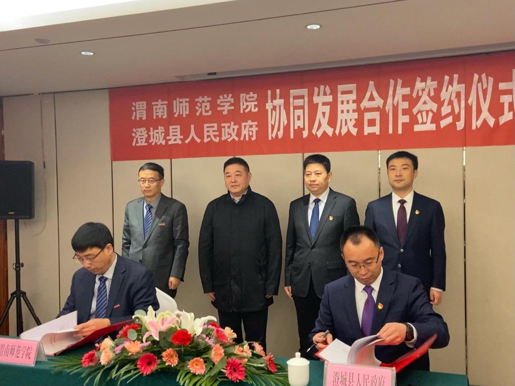据悉,此次签约是我校落实2018年《中共渭南市委 渭南市人民政府关于支持渭南师范学院加快发展的意见》精神的重要一步,也是我校扎根地方办大学的重要举措。会议期间,双方签约代表还进行了交流发言,相信校地合作将助力绿色澄城、活力澄城、富裕澄城、明朗澄城的高质量发展,也将提升我校高素质应用型人才培养质量,助力区域经济社会高质量发展。(通讯员 徐军义 审核人 赵铁流)