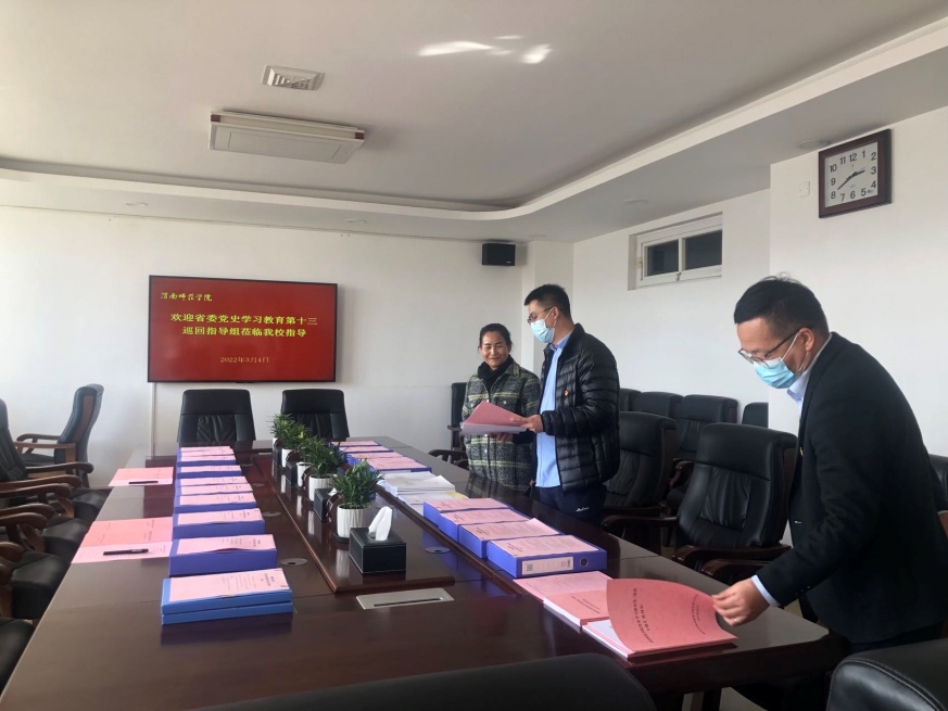 3月4日,省委党史学习教育第十三巡回指导组组长刘淑慧、成员魏盟、王健一行莅临我校开展党史学习教育第三轮集中指导工作。党委副书记韩小卫、汪勇,党委委员、宣传部部长李明敏陪同检查指导。