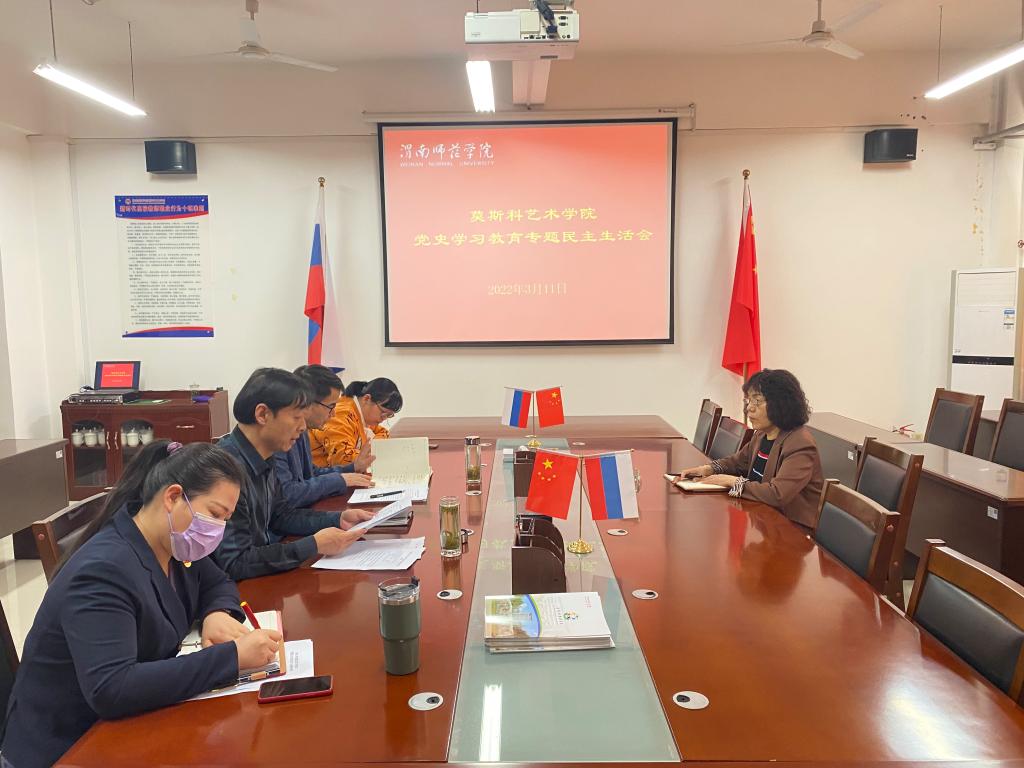 3月11日下午,莫斯科艺术学院召开2021年度党史学习教育专题民主生活会,校党委委员、副校长王菊霞到会指导,会议由党总支书记孟波主持。