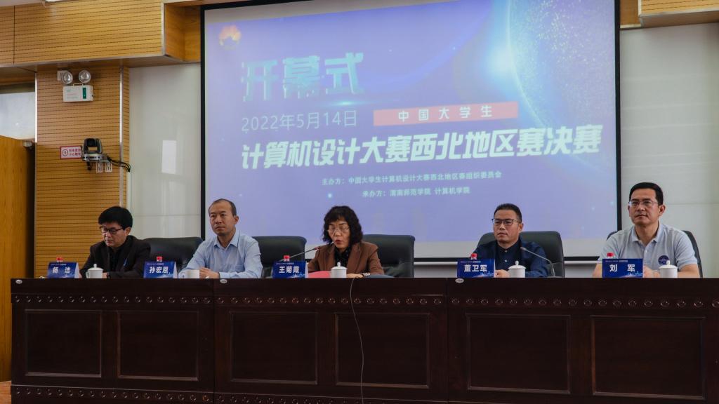 5月14日,我校举办2022年中国大学生计算机设计大赛西北地区赛决赛。中国大学生计算机设计大赛西北地区赛组委会秘书长董卫军、我校副校长王菊霞、教务处处长孙宏恩、计算机学院党总支书记杨洁、院长刘军及计算机学院教师和志愿者一百余人参加开幕式现场活动,西北地区赛组委会主任、国家教学名师耿国华和来自西北地区66所高校的100多位专家评委在线出席了开幕式。