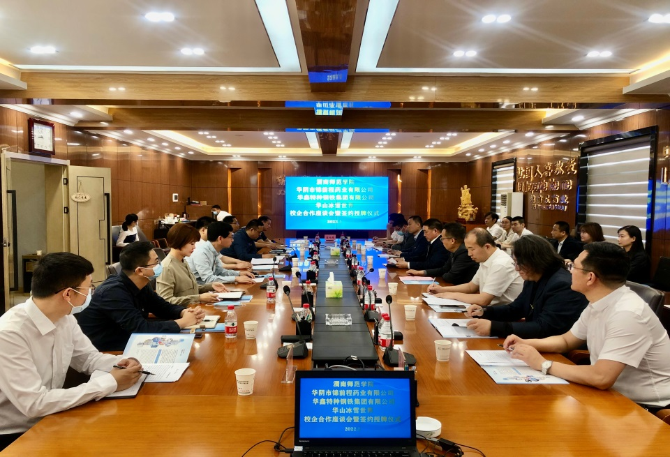 卓宇向陕西华鑫特种钢铁集团有限公司、华阴市锦前程制药有限公司两个企业颁授生产实习基地牌,计算机学院和陕西华鑫特种钢铁集团有限公司、华阴市锦前程制药有限公司分别签订大学生就业基地协议和实践教学基地协议,音乐学院和华山冰雪世界签订大学生就业基地协议。