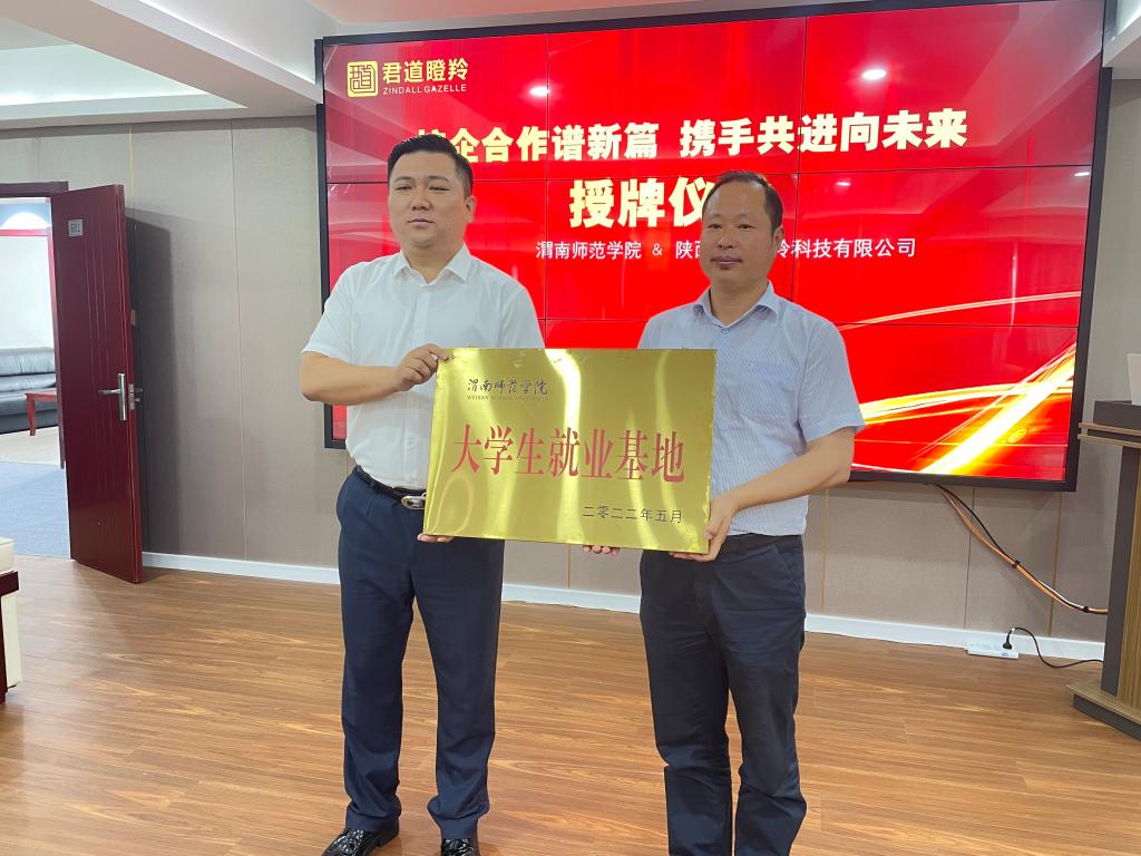 随后,汪勇与王刘华签订了《共建大学生就业基地协议》,并为陕西君道瞪羚科技有限公司授大学生就业基地牌。我校经济与管理学院毕业生李莹现场与企业签约。