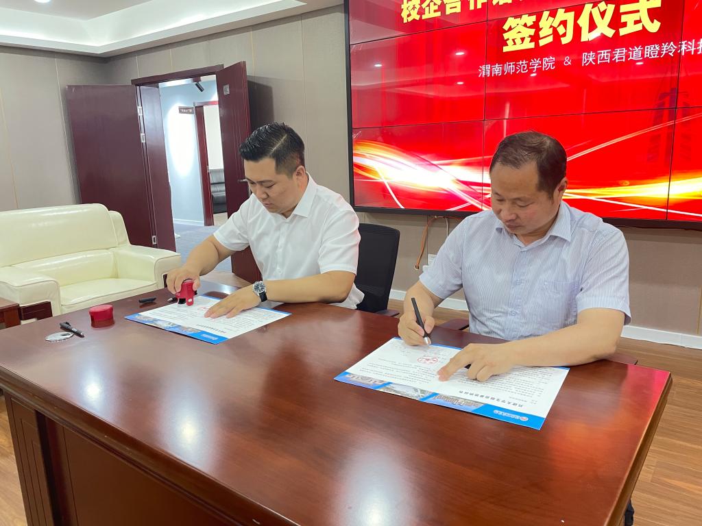5月31日上午,党委副书记汪勇,物理与电气工程学院副院长白秀英等人前往陕西君道瞪羚科技有限公司调研交流,并签订合作基地协议。