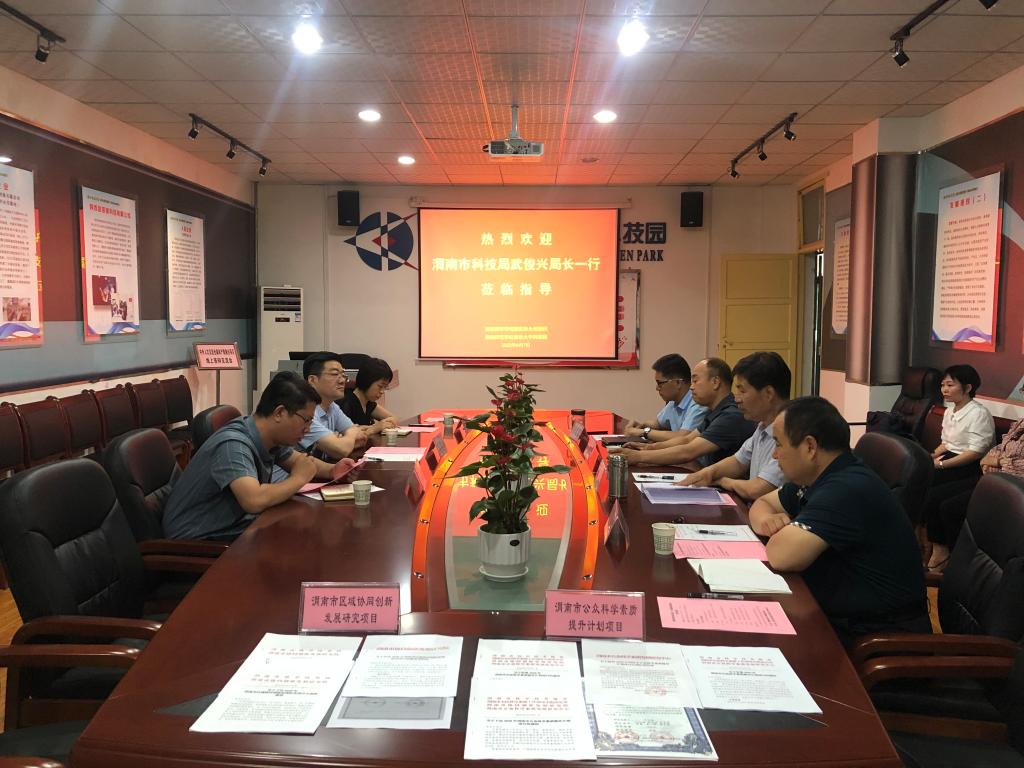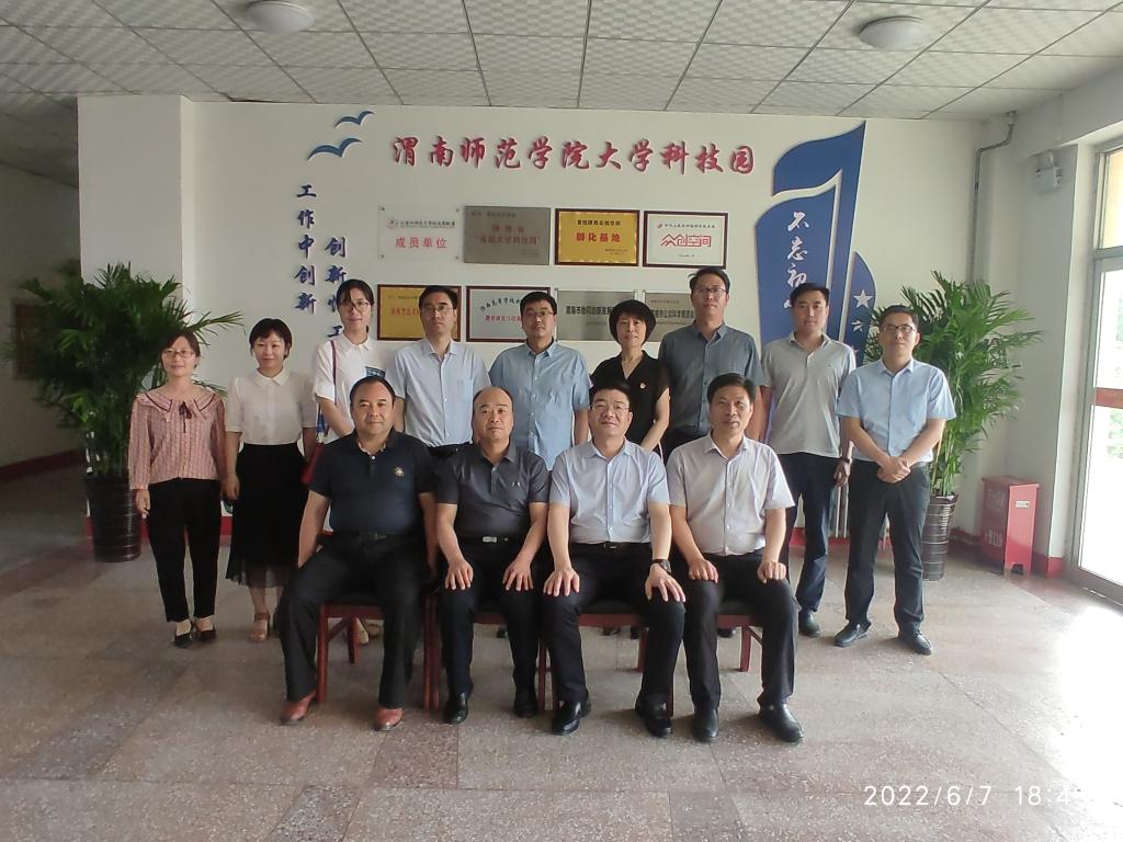 6月7日下午,渭南市科技局党组书记、局长武俊兴,渭南市科学技术局党政办主任、市资源统筹中心副主任杜晓玲,渭南市科学技术局资源配置科科长宁远骄一行到我校大学科技园调研工作。副校长卢爱刚、大学科技园总经理王建平、党支部书记王争辉、我校技术转移中心主任阴国富及区域协同创新发展研究项目5名课题组代表、博士教授专家服务团2名代表陪同座谈。