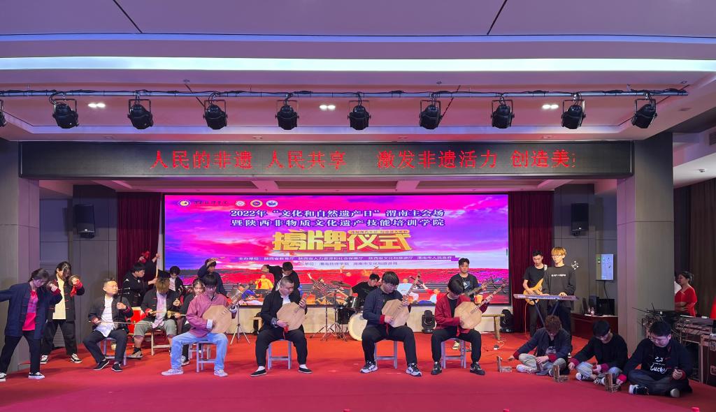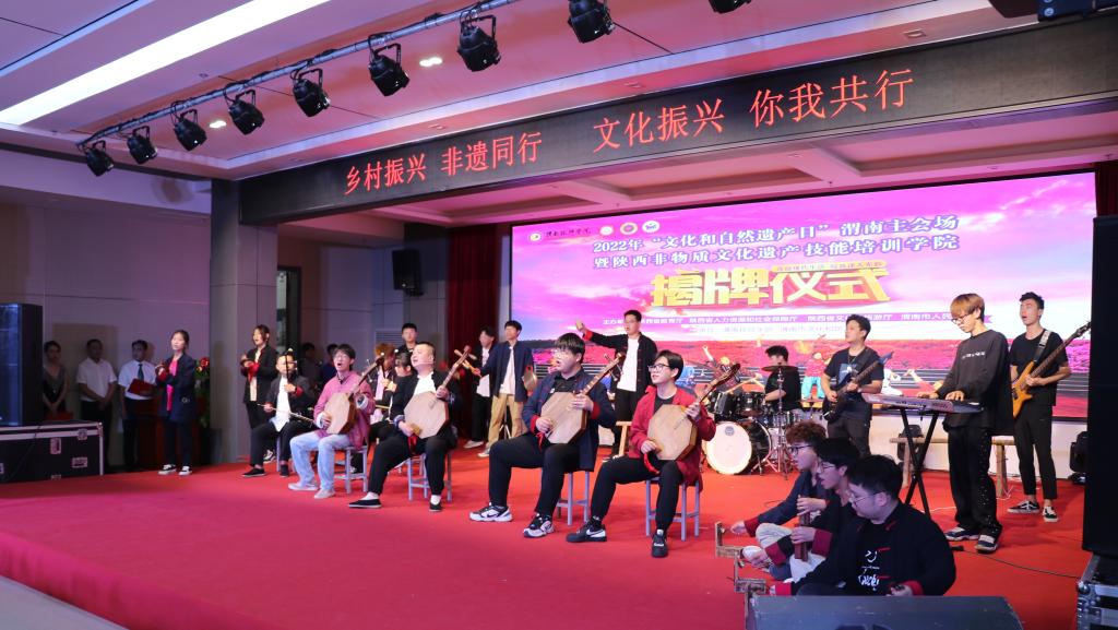 6月10日上午,2022年“文化和自然遗产日”渭南主会场暨陕西非物质文化遗产技能培训学院成立揭牌仪式在渭南技师学院举办,我校莫斯科艺术学院大学生老腔艺术团应邀演出,压轴倾情表演,得到活动主办单位和与会领导的高度评价。渭南市市长陈晓勇,陕西省人社厅党组成员、副厅长陈晓东,陕西省文化和旅游厅二级巡视员郭明历,渭南市委常委、副市长刘强,副市长张开,陕西省人社厅、陕西省文化和旅游厅、渭南市人社局、渭南市文旅局相关领导出席活动。