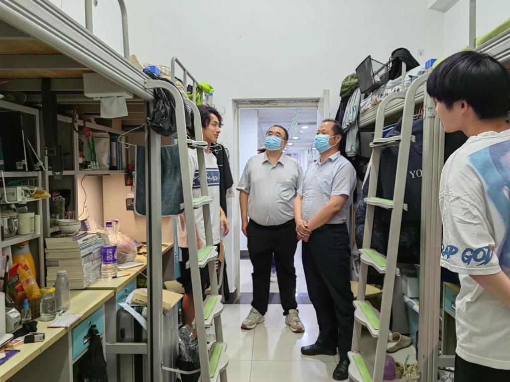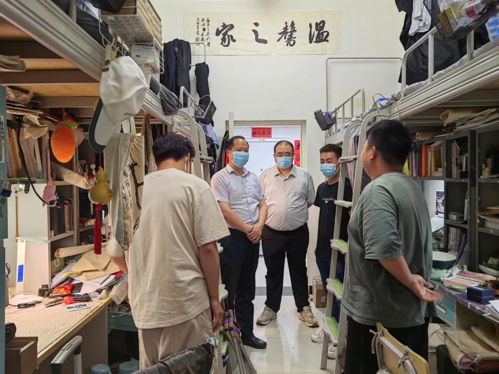 6月10日晚,党委副书记汪勇深入美术学院男生宿舍走访慰问。美术学院院长殷晓克、辅导员徐宁、赵普凡陪同。