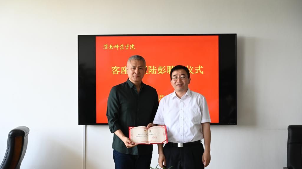 随后,张守华为陆彭颁发客座教授聘书,并对陆彭加盟我校表示欢迎。他指出,陆教授扎实的艺术创作功力和丰富的人才培养经验将有力推进我校戏剧与影视学学科的建设和发展。他表示,学校将为陆彭教授提供优良的工作条件,并要求传媒学院以此为契机,与陆彭教授在教学、科研、学科团队建设等方面开展深度合作,争取早结硕果。