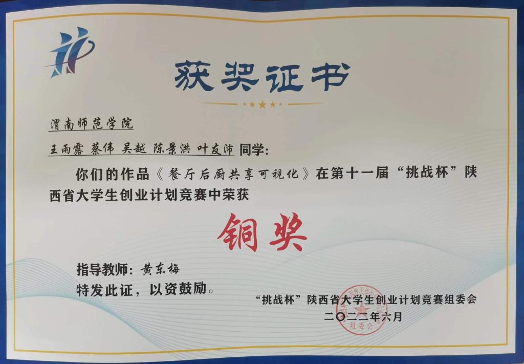 6月25日,由共青团陕西省委、中共陕西省委教育工委、陕西省科学技术厅、陕西省人力资源和社会保障厅、陕西省科学技术协会、陕西省社会科学院、陕西省学生联合会、陕西省西咸新区开发建设管理委员会主办,西安理工大学、秦创原创新促进中心承办的第十一届“挑战杯”陕西省大学生创业计划竞赛闭幕式暨颁奖仪式在西安理工大学曲江校区图书馆报告厅举行。我校共推荐13份作品参加比赛,经过省级初选,终审答辩等环节,我校共有2份作品获得铜奖。