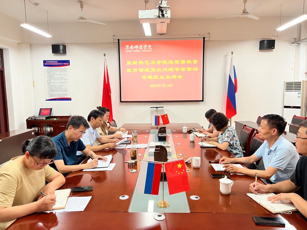 7月12日上午,莫斯科艺术学院召开巡视整改暨教育领域突出问题专项整治专题民主生活会,副校长王菊霞到会指导,督导组成员王俊安、王雅蓉、高军强参加会议。会议由学院党总支书记孟波主持,学院全体处级领导干部参加会议。