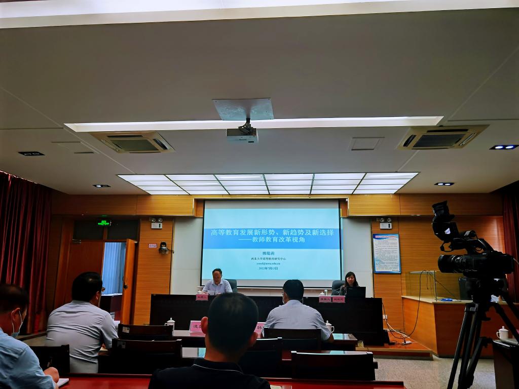 姚聪莉为我校作了题为《高等教育发展新形势、新趋势及新选择——教师教育改革视角》的学术报告,她以自己丰富的理论知识和多年教学改革研究经历,从近年来我国高等教育发展的新形势、教师教育改革新趋势、师范院校改革与发展的新选择等三个方面进行了深入讲解,同时结合案例做了细致的分析。她指出,坚守教师教育的理想和目标、创新合作办学机制、加强师资队伍建设、创新人才培养模式、优化内部治理结构、提高办学质量及强化特色和优势是师范院校改革与发展的新选择。最后,她就教师教育改革提出意见建议。