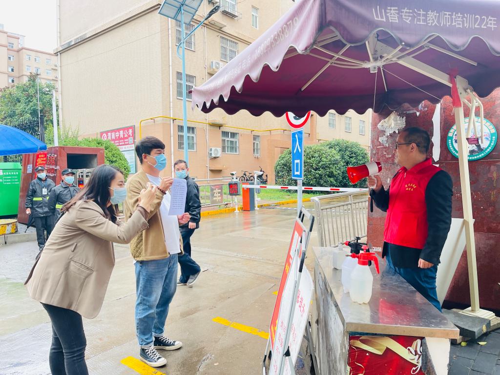 防控疫情,责任在肩。为配合我校疫情防控工作,充分发挥基层支部战斗堡垒与党员先锋模范作用,在学校党委组织部指导下,8月29日,传媒学院党总支组织教职工党员和教职工代表组成疫情防控志愿服务先锋队,分组协助站南办师院社区开展河洲花园小区疫情防控管理与人员疏导工作,用实际行动诠释家国情怀,为社区的疫情防控工作贡献力量。本次活动得到了学校人民武装部及求真育人工作室的大力支持。