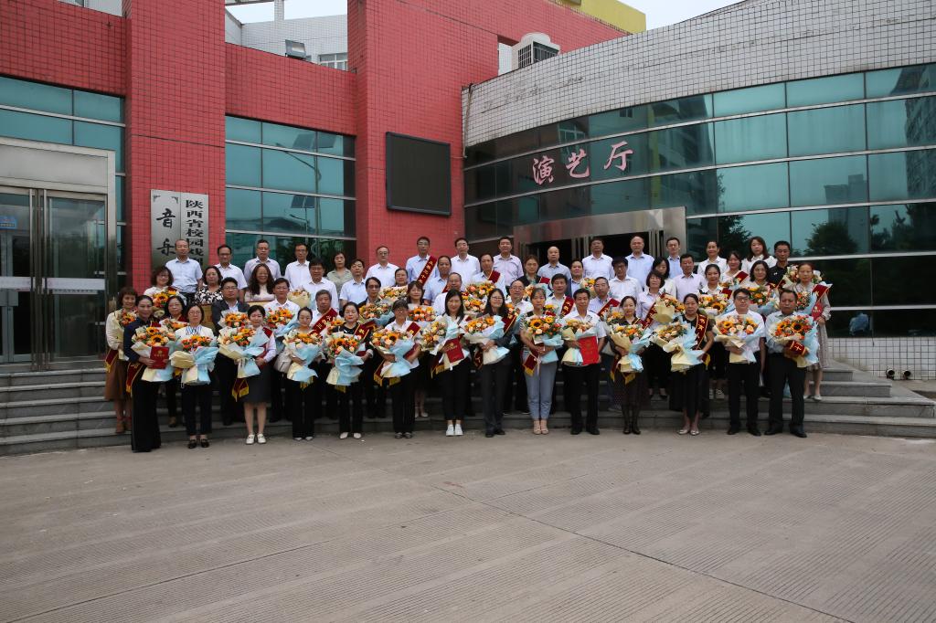 会后,受表彰教工、教育战线满三十年教工和学校领导合影留念。