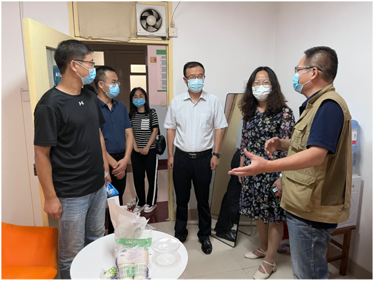 在外国语学院新生所在的二号公寓、三号公寓,曹强查看了新生住宿台账、了解了外国语学院新生报到情况,并深入辅导员值班室,听取了该院领导班子对学院静默管理期工作的基本情况和包联公寓管理工作安排及线上教学工作的汇报,对学院包联方案细致、值班人员尽责、学生底数清楚、志愿服务暖心、后勤保障贴心表示肯定,对大家克服困难、坚守岗位的辛勤工作表示感谢。