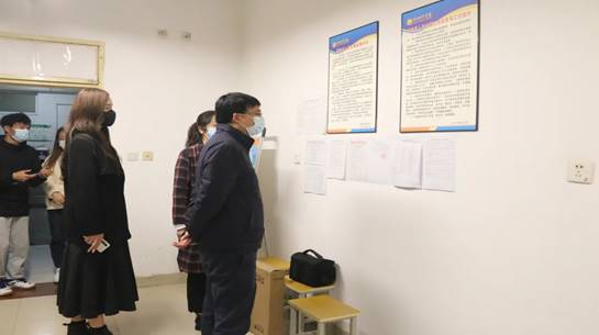 常青林亲切慰问了公寓管理人员和值班辅导员,查阅了包联单位相关管理制度、值班表、值班工作记录以及楼宇学生名册,了解疫情防控各项工作落实情况。