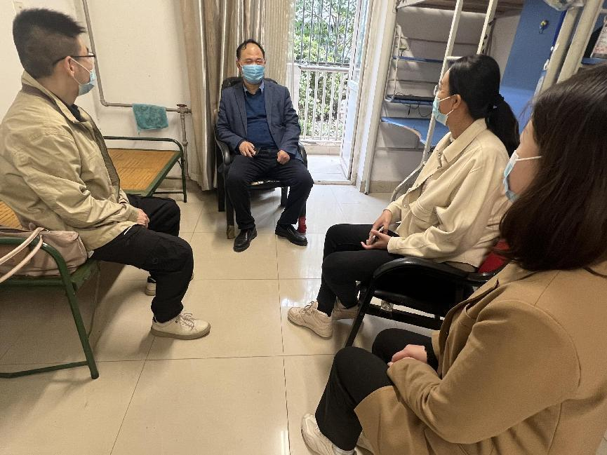 10月17日下午,党委委员、组织部部长凌朝栋深入计算机学院包联的5号学生公寓调研指导疫情防控工作,并深入宿舍看望慰问学生。计算机学院党总支副书记武楠、学工办副主任李雷玮、值班辅导员陪同调研。