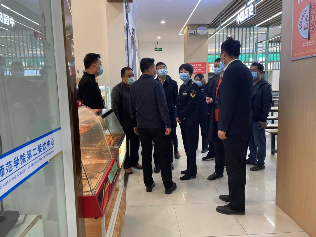 周庆文一行对后厨加工操作区、售卖区、清洁区、留样间等重点区域进行了检查,详细了解学生餐厅食品经营许可资质、原材料贮存、加工操作、餐饮具消杀、人员健康管理、进货查验及索证索票等关键环节。周庆文对我校餐厅的管理工作给予肯定,要求要持之以恒继续加强食品安全管理,确保食品安全,让师生满意,让社会放心。