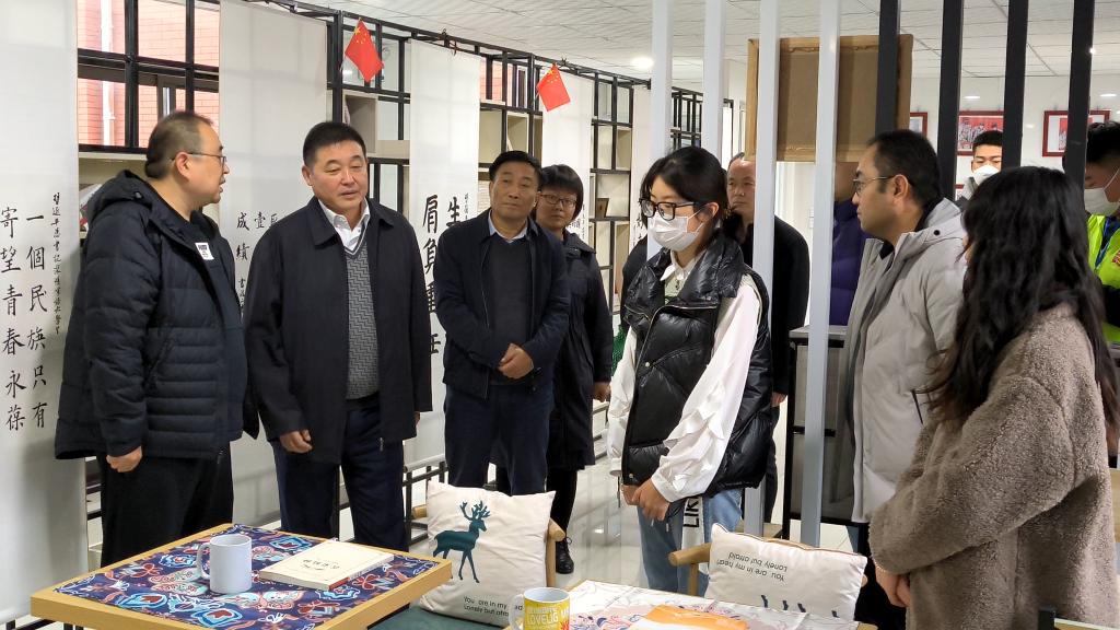 在富平校区“美院美画”铸魂育人实践研究基地,卓宇为基地挂牌,并参观了基地党史汇作品、习近平总书记寄语书法、文创产品等展区,还观看了“美院美画”之红色作品讲解视频。