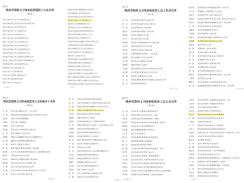 其中,我校环境与生命学院孙永秀关于“丰富劳动教育形式,把劳动教育纳入人才培养全过程”的提案被评为陕西省教科文卫体系统优秀提案;我校计算机学院分会被授予“陕西省教科文卫体系统模范职工小家”称号;传媒学院分会张鸽舞同志被授予“陕西省教科文卫体系统优秀工会工作者”称号;教育科学学院分会郑媛同志被授予“陕西省教科文卫体系统优秀工会积极分子”称号;数学与统计学院分会陈小芳同志被授予“陕西省教科文卫体系统优秀工会之友”称号。(通讯员 陈成 审核人 赵江永)