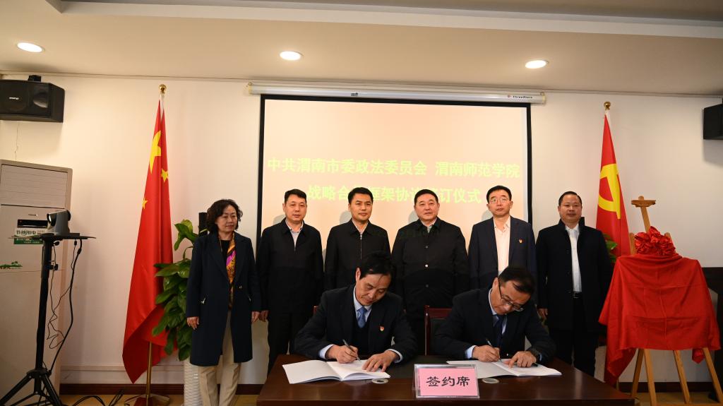 2月28日,我校与渭南市委政法委签订战略合作协议并举行“习近平法治思想创新实践中心”揭牌仪式。校党委书记卓宇,渭南市委常委、政法委书记刘凯出席。校党委副书记汪勇,副校长曹强,渭南市委政法委常务副书记惠中正、副书记李永刚、专职委员吴超群,市国安局局长张萌和市级政法部门有关负责同志参加。签约仪式由校长张守华主持。