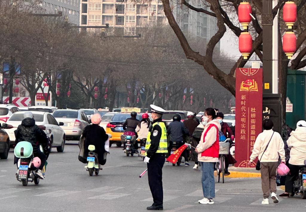 自3月6日起,学校学生志愿者身着红色马甲,在渭南城各路口于早、中、晚三班次开展路口站岗执勤活动。