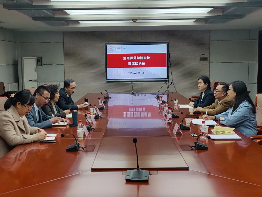 3月15日下午,党委委员、副校长王菊霞一行赴陕西师范大学调研交流国际化办学工作,与陕西师范大学党委常委、副校长董治宝,国际合作与交流处处长张凌云、副处长李娟等同志座谈。