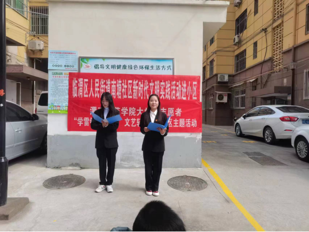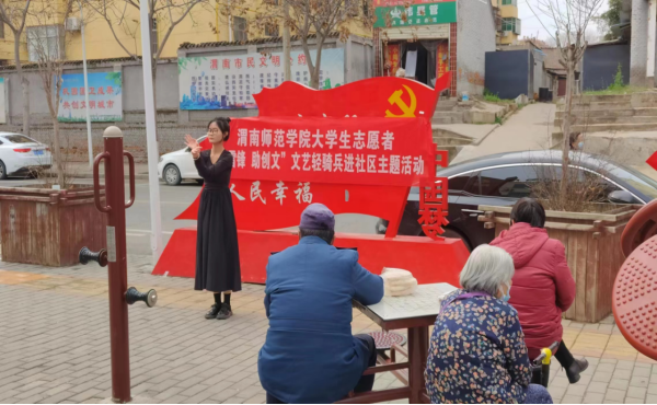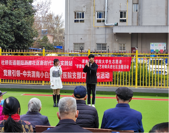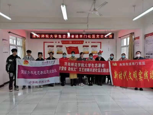 为深入学习宣传贯彻党的二十大精神,贯彻落实习近平总书记对深入开展学雷锋活动作出的重要指示精神,积极投入到渭南市创建全国文明城市工作之中,我校组织大学生志愿者组成“文艺轻骑兵”小分队共计千人次,广泛深入渭南市临渭区6个街道办的108个社区网格小区,将精彩的文艺演出送到了居民家门口。