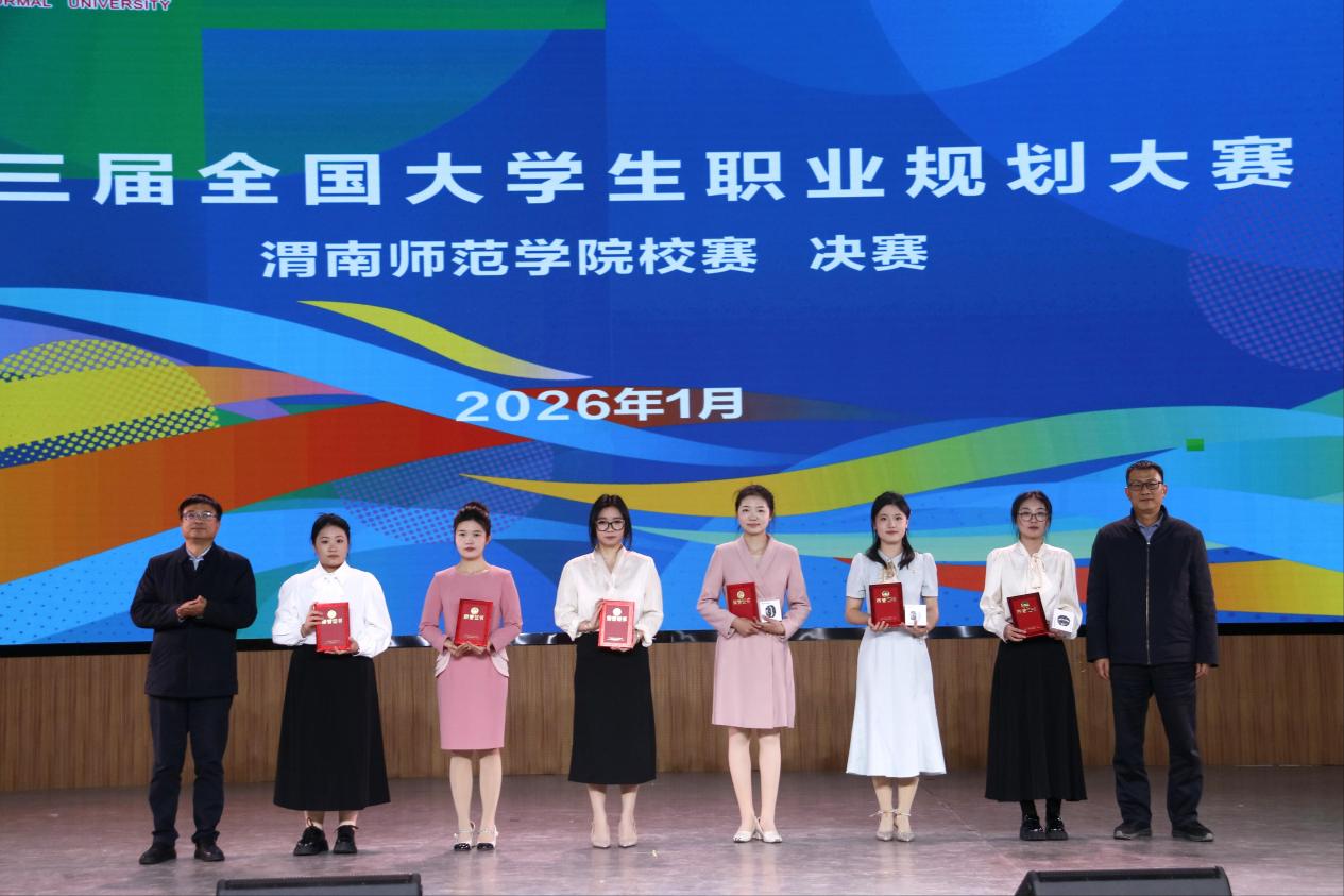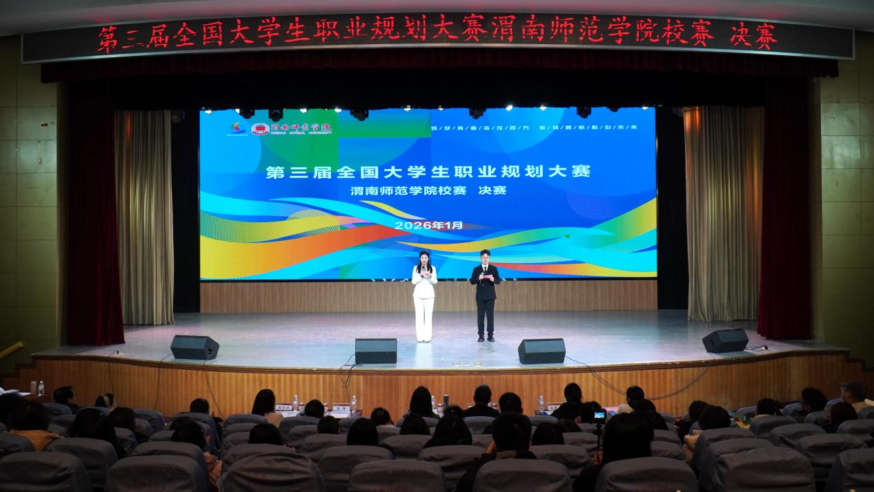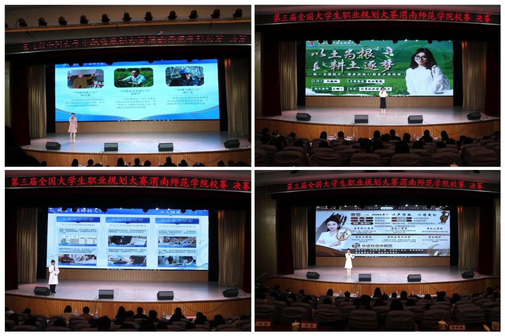 本次大赛以“筑梦青春志在四方,规划启航职引未来”为主题,自启动以来,得到了全校各二级学院的积极响应和广大学生的踊跃参与,共有一万余名学生参赛。大赛分为成长赛道和就业赛道两个赛道,经过前期15个二级学院初赛、校级复赛,最终12名选手晋级校级决赛。本次比赛邀请西北大学就业创业指导服务中心常务副主任丁莹莹、陕西铁路工程职业技术学院就业指导中心主任姜留涛、陕西丰泽实业有限公司人力资源部经理吕陇苹、中国移动渭南分公司人力资源部张伟、渭南荣耀科技传媒有限责任公司行政主管石炎炎等5名校外专家担任大赛评委。