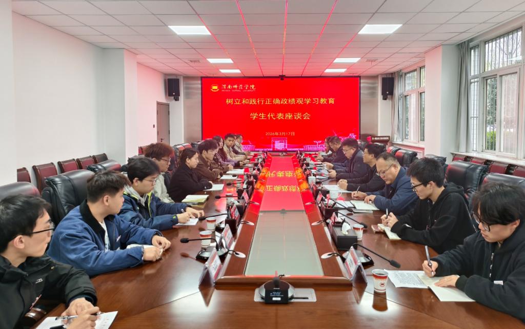 3月17日,学校分别组织召开树立和践行正确政绩观学习教育学生代表和辅导员代表座谈会。党委书记郭强出席并讲话,党委副书记常青林主持会议。