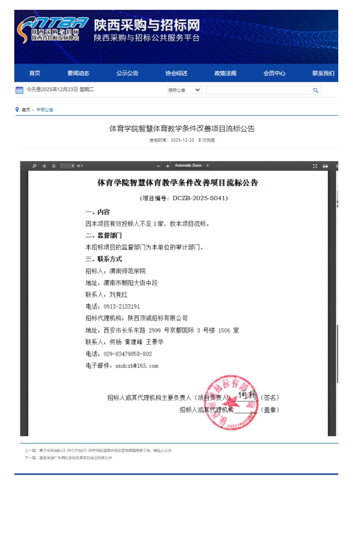 体育学院智慧体育教学条件改善项目流标公告