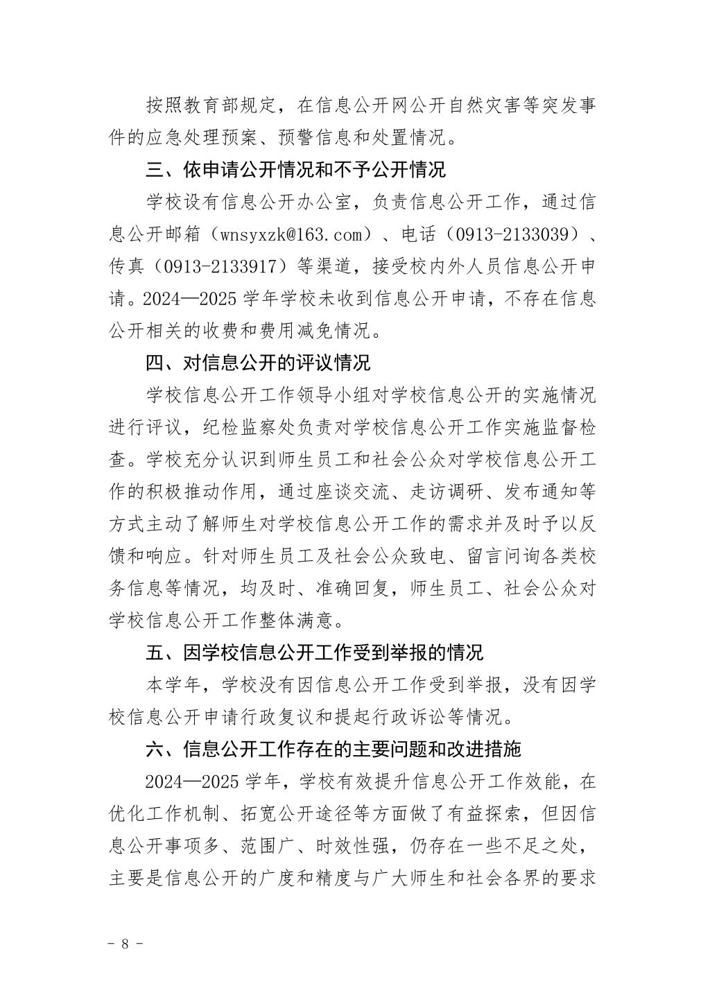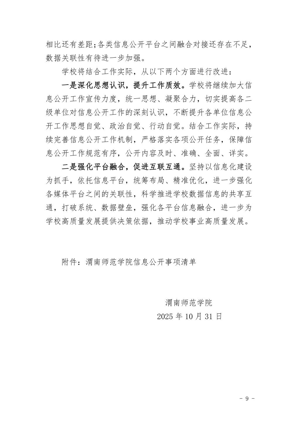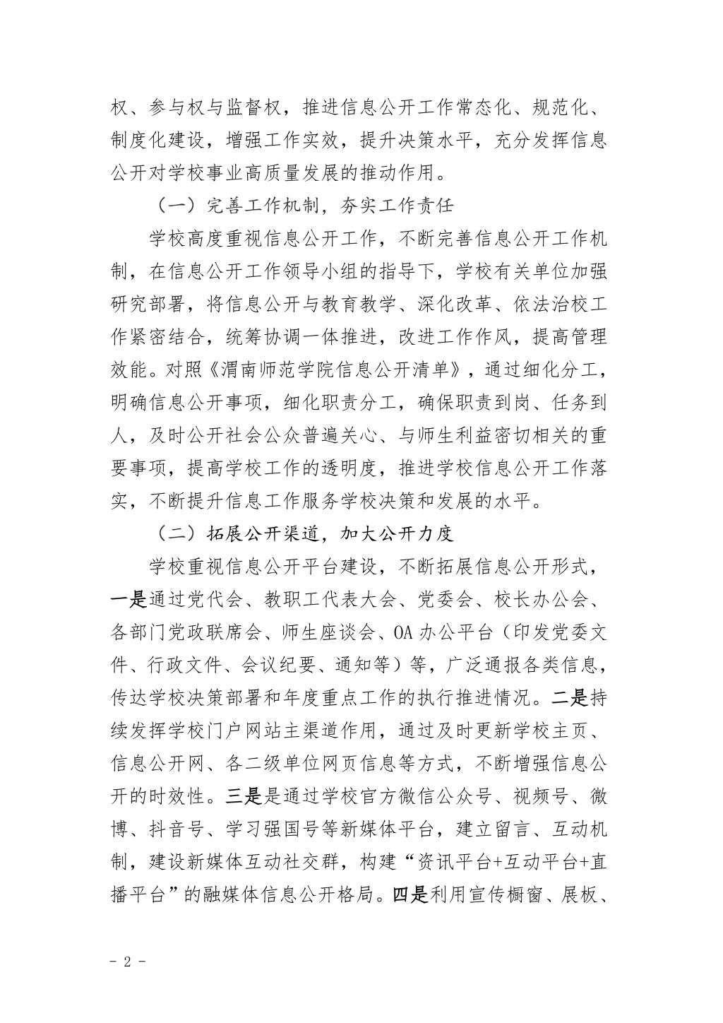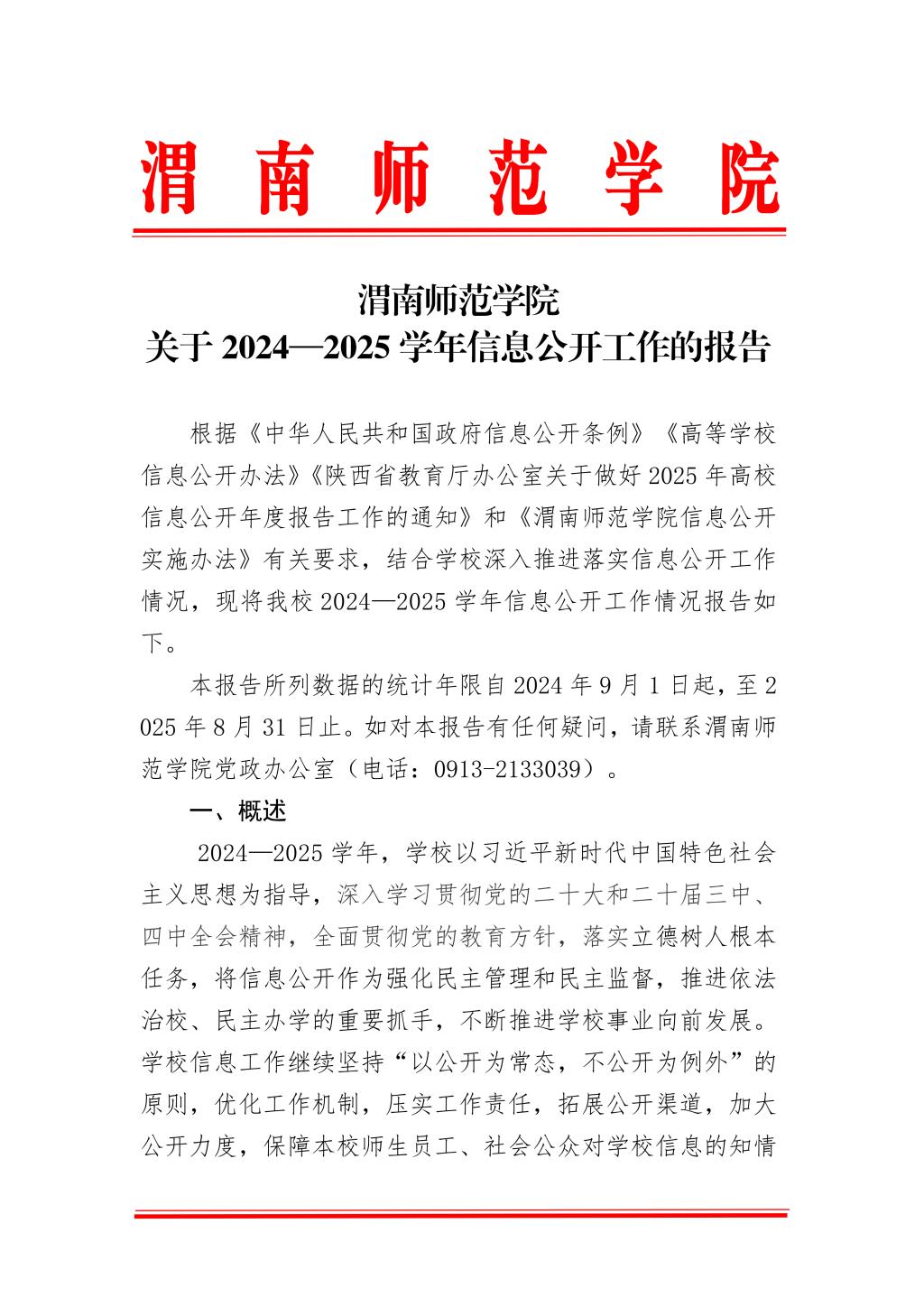 渭南师范学院关于2024-2025学年信息公开工作的报告