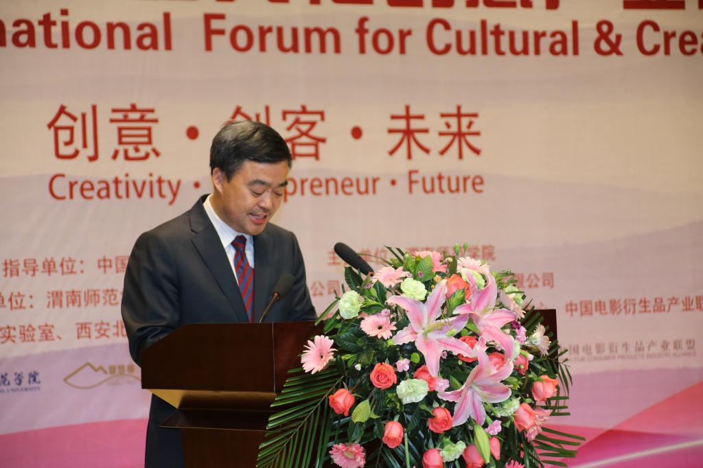 2017年5月8日下午,“中国金粟山丝绸之路文化创意产业国际论坛”在渭南师范学院开幕。此次论坛由中国教育国际交流协会倡导部署、支持指导,渭南师范学院主办,渭南师范学院大学科技园有限责任公司、北京智慧谷文化传媒有限公司承办。本次论坛主题为“创意·创客·未来”。