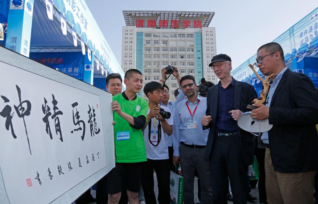 本次成果展得到了“世界创意产业之父”、英国著名创意文化产业研究专家约翰·霍金斯、著名文化创意专家张玮,文化部中国艺术科技研究所文化标准研究中心主任闫贤良等专家的关注。他们在校长丁德科的陪同下,亲临展会现场,频频在各创客团队展位驻足观看,与青年创客互动交流,聆听他们的创业经历,欣赏他们的创业成果,对他们的创业实绩提出了高度赞赏。