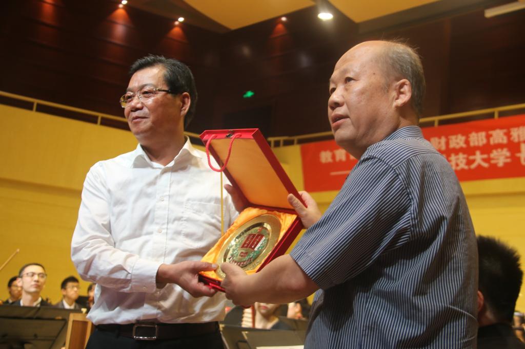 6月12日晚,由教育部、文化部、财政部主办的2017年高雅艺术进校园活动——西安电子科技大学长征组歌交响合唱音乐会在我校华金音乐厅举行,西安电子科技大学党委副书记龙建成,我校党委书记张金安、党委副书记赵伏友、副校长权雅宁、学术委员会主任王菊霞,西安电子科技大学团委书记朱文凯出席活动,相关部门、部分二级学院领导及五百余名学生代表观看演出。