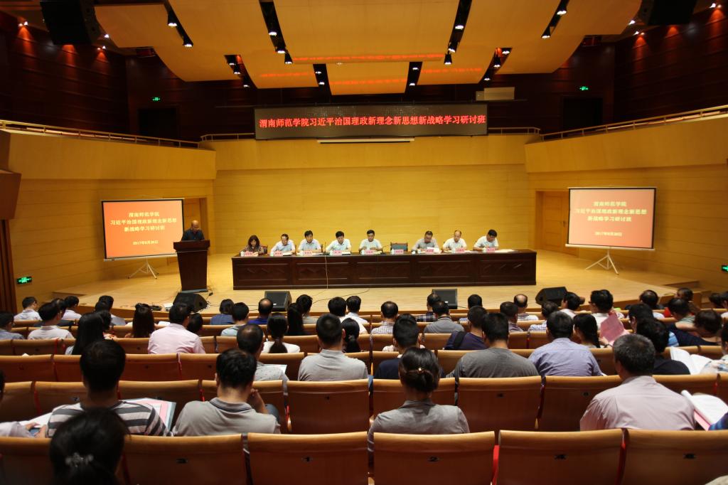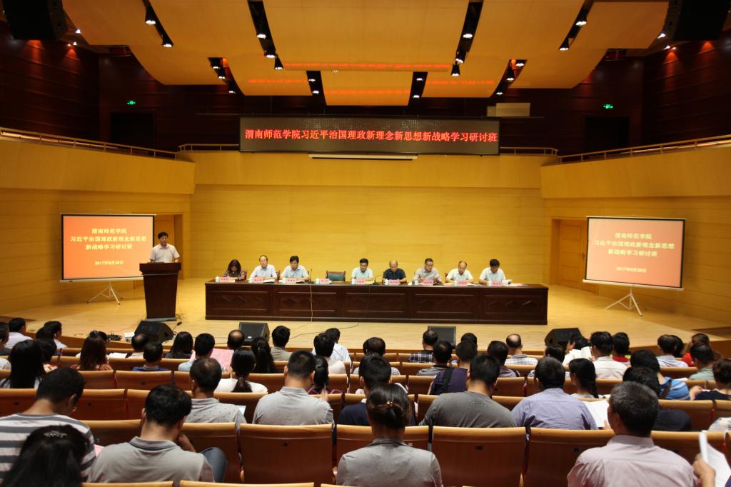 8月25日-8月29日,渭南师范学院举办骨干教师习近平治国理政新理念新思想新战略学习研讨班。学校副科级以上干部、副高级以上职称党员教师、具有博士学位的党员教师、思政课部全体教师、专兼职辅导员及教工党支部书记共500余人参加了学习。