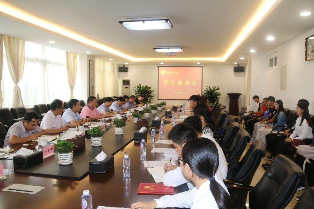 9月14日下午,学校在厚德楼四楼第二会议室召开学生代表座谈会。院长卓宇、党委副书记任健、纪委书记肖耀刚、副院长李海龙出席座谈会,科技发展集团公司党委书记董事长蹇旭华、保卫处处长王争辉,教务处副处长林关成,学工部副部长陈景西、田耿辉,团委副书记姚明亮及来自全校各二级学院的23名学生代表参加了座谈会。学工部部长王俊安主持座谈会。