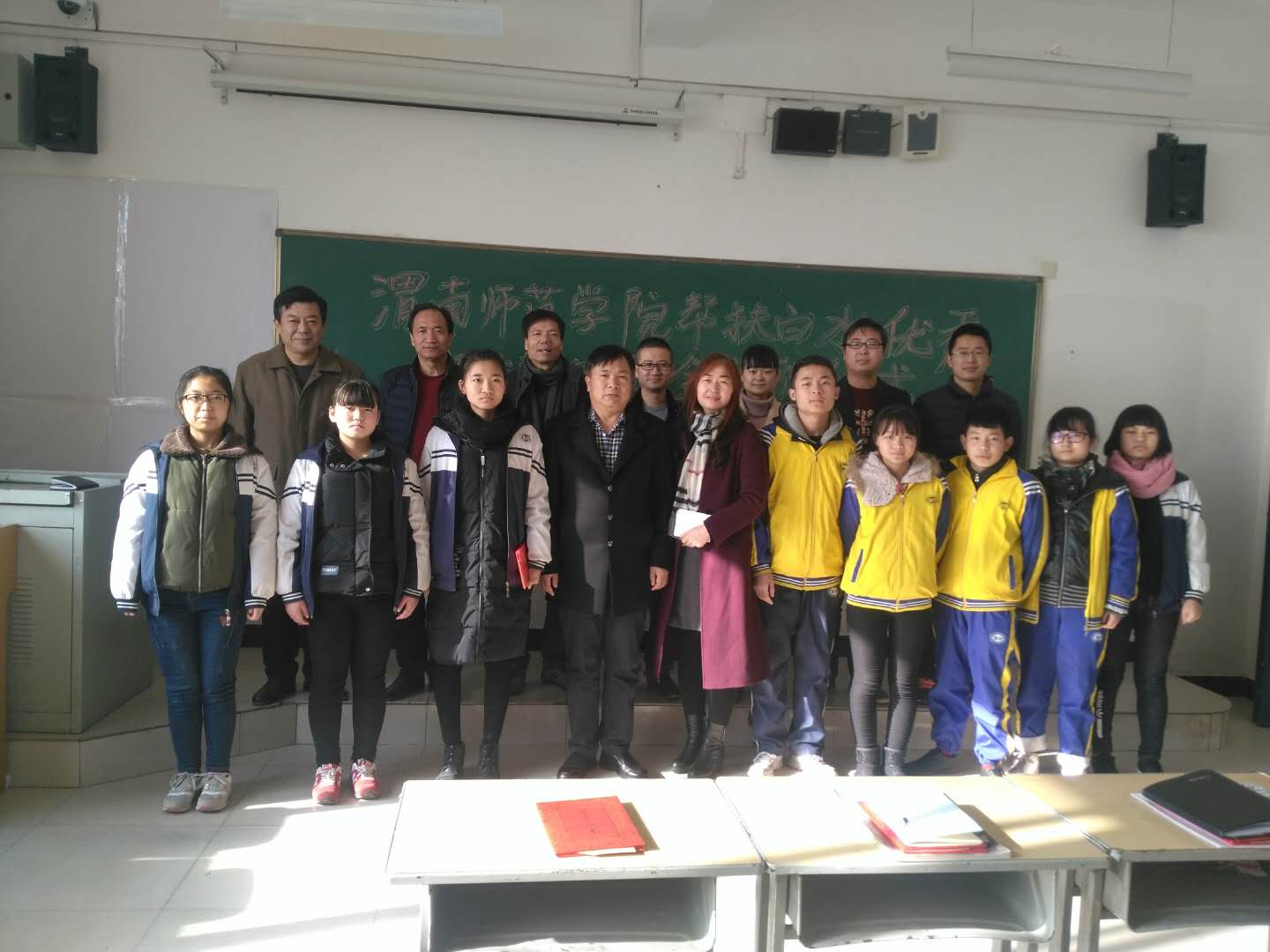 为深入贯彻党的十九大关于精准扶贫的重要部署,进一步推进脱贫帮扶工作。12月1日,副院长李海龙、学生工作部部长王俊安、学生工作部副部长陈景西及学生工作部相关扶贫工作人员一行赴白水县为2017年教育帮扶优秀师生奖获得者颁发奖学金。