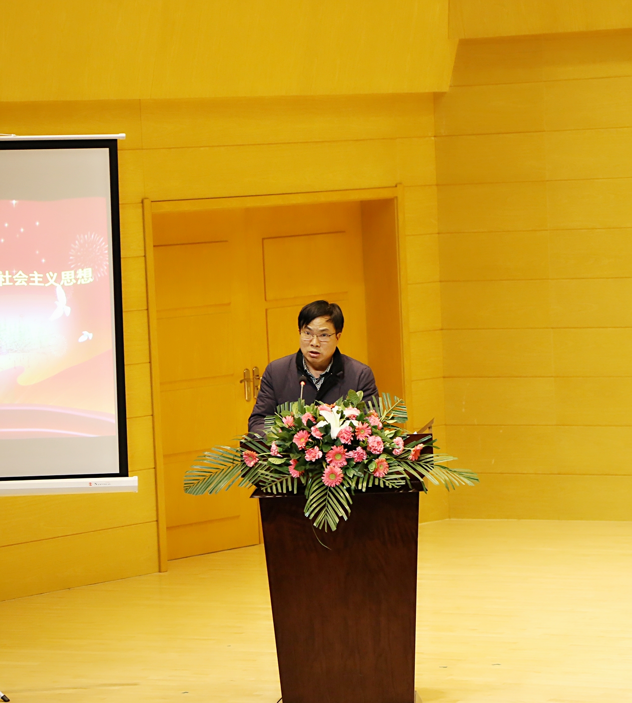 2018年1月3日下午,我校“大学生学习党的十九大精神和习近平新时代中国特色社会主义思想研讨会”在华金音乐厅隆重召开。学校党委书记丁德科、党委副书记任健、党委委员、副院长李海龙出席会议,学校宣传部、学工部、人武部、团委等部门负责人,各二级学院分党委、党总支书记、副书记、学工办主任、学生党支部书记、专兼职辅导员,以及学生干部、学生党员、入党积极分子代表共500余人参加大会。会议由学工部部长王俊安主持。
