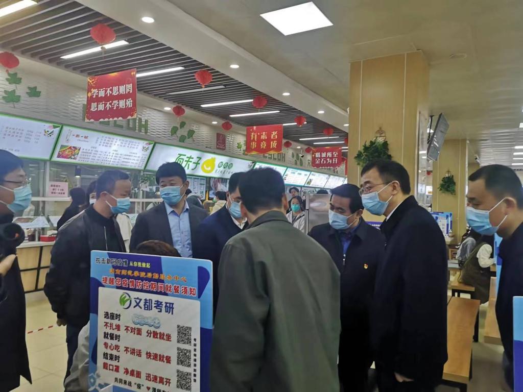 督导检查组先后深入学校附属医院、第一学生餐厅、健康驿站等地检查指导。在附属医院,刘宝琳边听边看边问,检查防疫药品、防控物资储备和使用情况,进入诊室询问发热学生就诊流程,查阅门诊日志,查看医院接诊量变化情况,详细了解我校春季传染病防控各项工作。在第一学生餐厅,他与就餐学生亲切交谈,询问餐食品质和餐费定价等情况,并听取了学校后勤供应保障情况的汇报。在学校健康驿站,督导检查组查阅了健康管理台账和出入站记录登记,听取了驿站管理、服务、保障等工作情况汇报。