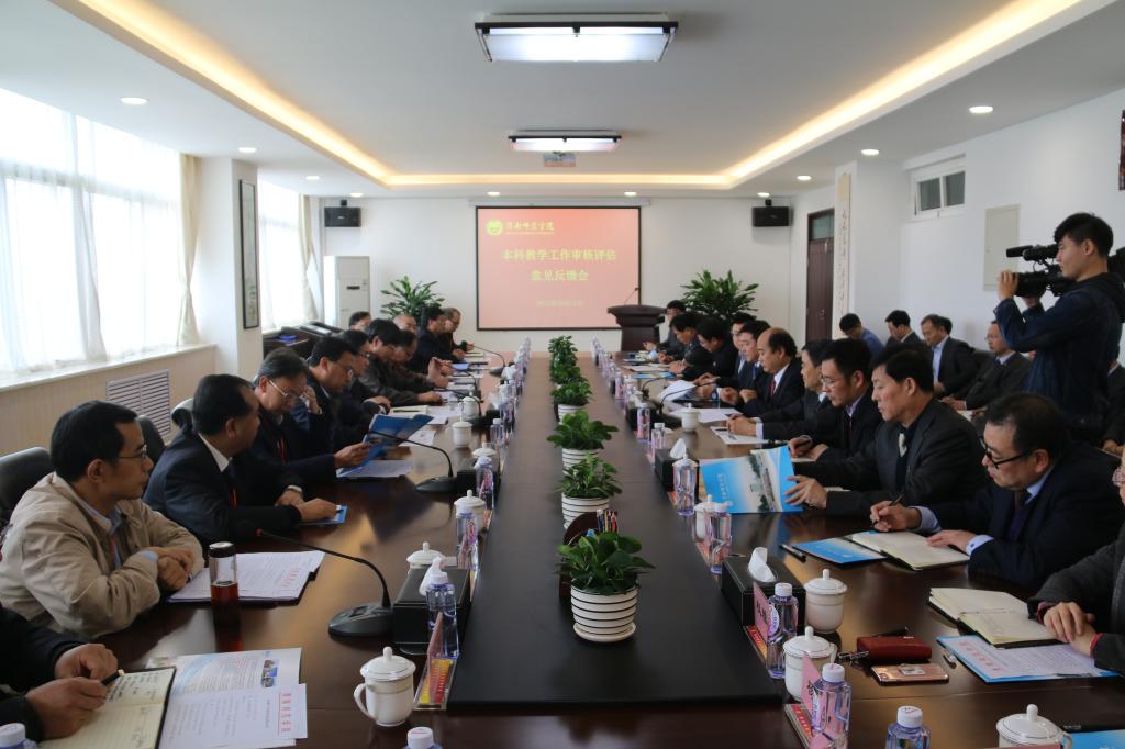省教育厅副厅长、省高教局副局长刘建林作重要讲话。刘建林对学校工作提出三点意见:第一,切实抓好整改提高工作。要求学校及时整理反馈意见,集体讨论、深入研究,逐条逐项建立台账,逐条对照提出整改措施。第二,全生命周期提高人才培养的质量。基于分类管理和供给侧结构性改革,准确把握“三个规”,即规律、规划、规矩,把握办学有特色、发展有优势、工作有亮点,把握学校的目标定位,对接国家战略和区域经济发展,进行专业结构调整。第三,全面提升学校治理现代化水平。遵循教书育人的规律,健全现代大学运行的体制和机制,推动高等教育治理的现代化。他强调,本次评估对学校来说是非常关键的,省教育厅将帮助、督促我校抓好审核评估整改工作,加大力度支持学校的改革发展,省教育厅也将对学校的评估整改情况进行中期检查和期满评估回访。