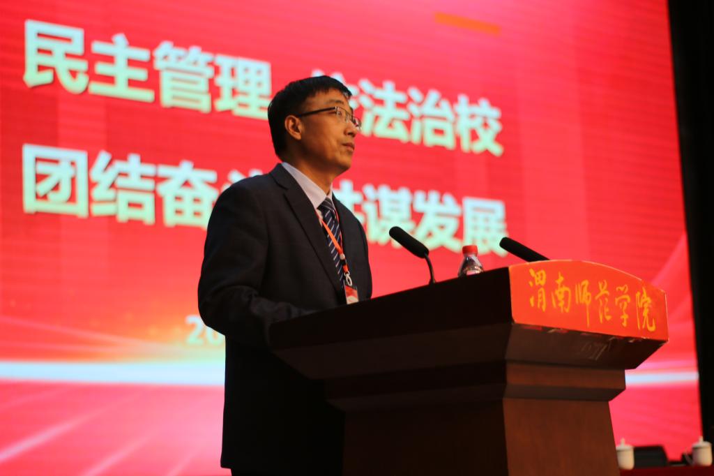校长张守华作题为《团结奋斗攻坚克难奋力谱写学校高质量发展新篇章》的行政工作报告,对学校2022年的工作进行细致总结、全面回顾。总结指出,过去一年学校较好完成全年各项目标任务,尤其在申硕攻坚、校地合作、“1266”战略等各项事业扎实推进上取得新进展、新突破、新成绩。