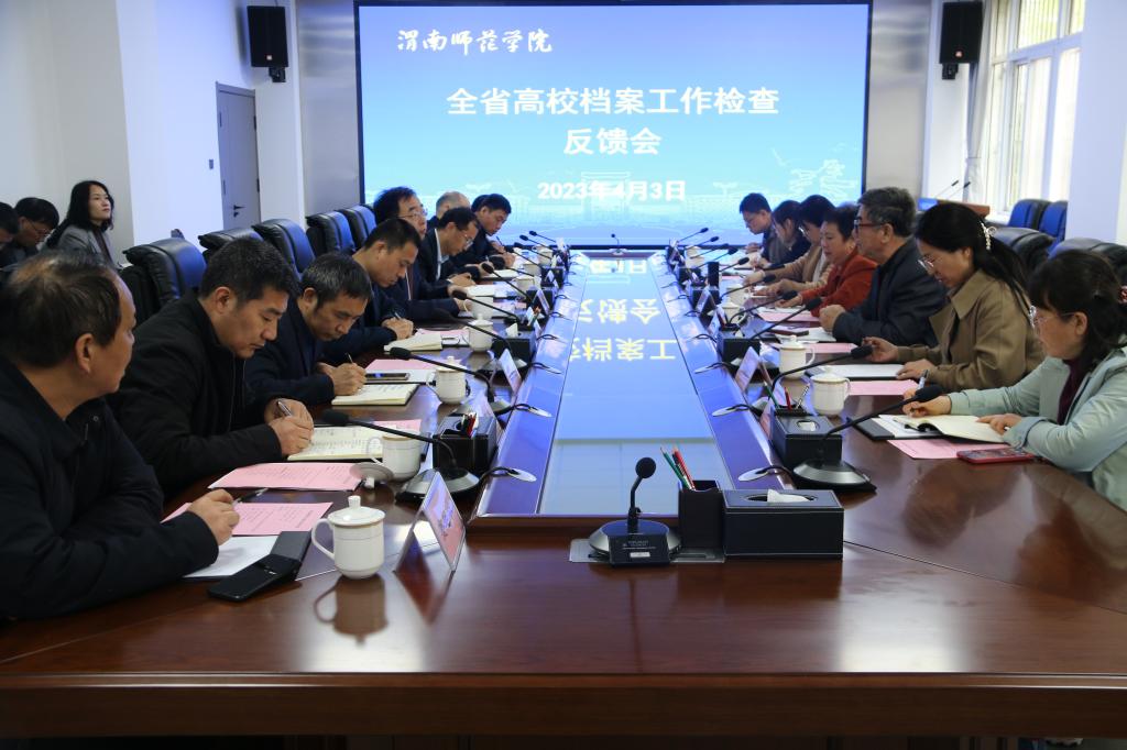 4月3日上午,陕西省高校档案工作检查组一行来我校检查指导档案工作。检查组由省教育厅调研员、省高教系统档案学会副理事长王瑛,省高教系统档案学会理事长吴连书,西安理工大学档案馆馆长王玉吉等7人组成。检查分为工作汇报、实地检查、情况反馈三个环节。校长张守华主持汇报会。