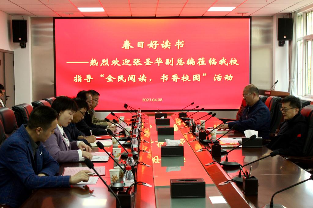 4月8日,《中国教育报》常务副总编张圣华一行莅临我校指导“全民阅读,书香校园”工作。校党委副书记韩小卫出席活动,人文学院院长赵前明主持会议。