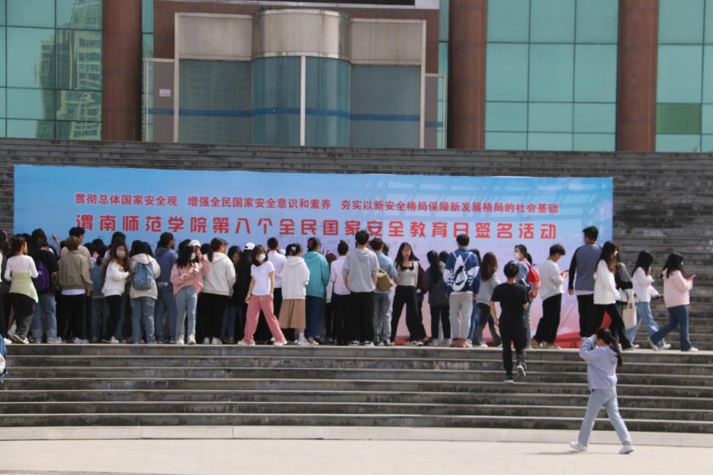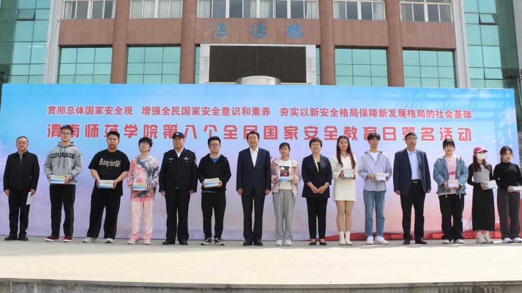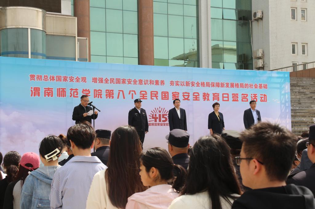 4月12日下午,学校联合渭南市公安局等相关单位,在朝阳校区举办第八个全民国家安全教育日签名活动。渭南市公安局党委委员、副局长宁双喜,我校校长张守华,党委副书记韩小卫、袁亮等出席活动。