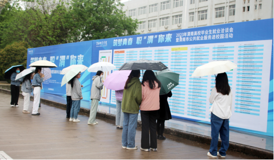 4月21日,由陕西省教育厅、陕西省人力资源和社会保障厅指导,渭南师范学院、渭南市人力资源和社会保障局、西安市人力资源和社会保障局主办,渭南市公共就业和人才交流服务中心、渭南师范学院学生工作部(处)、西安市人才服务中心、西安市职业介绍中心承办,各县市区人才交流服务中心、荣耀人才网协办的2023年渭南高校毕业生就业洽谈会暨渭南市公共就业服务进校园活动在我校朝阳校区成功举办。
