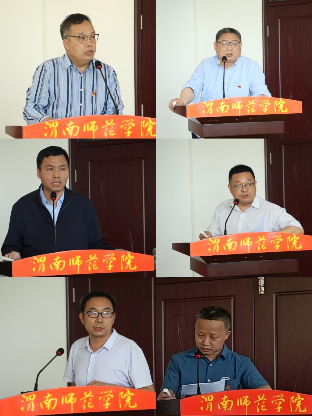 张守华在讲话中对各二级学院和相关职能部门的工作进行了逐一点评,对各单位开学以来紧扣学校发展重大任务、重大工作所付出的努力,特别是对主题教育、干部作风能力提升年活动开展以来的创新亮点和取得的成绩,给予了充分肯定。他指出,学校召开本次会议,旨在交流工作、树立标杆、凝练成绩、促进发展,在学校弘扬“勇担当、善创新”的良好作风,推动学校各项工作再上新台阶。在谈到主题教育工作时,他强调,要坚持学思用贯通、知信行统一,把习近平新时代中国特色社会主义思想切实转化为坚定理想信念,锤炼党性和指导实践,推动工作的强大力量,使全校始终保持统一的思想,坚定的意志、协调的行动,强大的战斗力,努力在学校各项工作中做到以学铸魂、以学增智、以学正风、以学促干,努力开创学校各项工作的新局面,让师生有更多的获得感、幸福感。下一阶段工作中,要牢牢把握主题教育“学思想、强党性、重实践、建新功”总要求,提升一流本科人才培养质量,持续深化本科教学改革和内涵建设;强化教师教育办学特色,积极打造国家师范教育基地;深化校地协同创新发展,为渭南高质量发展贡献渭师力量。