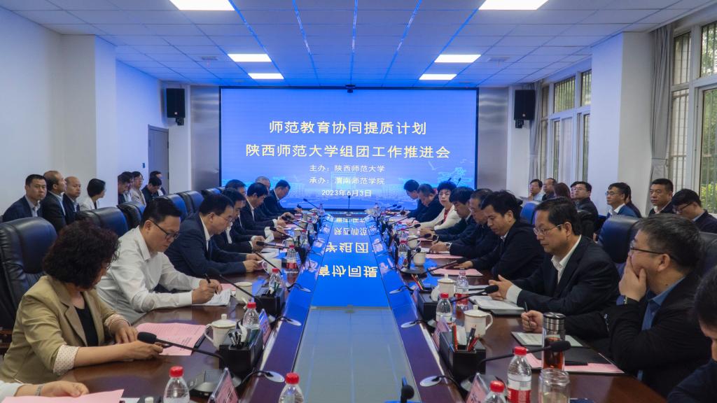6月3日,陕西师范大学主办、我校承办的师范教育协同提质计划陕西师范大学组团工作推进会在同心楼会议室举行,教育厅副厅长王海波出席会议并讲话,渭南市副市长刘宝琳、陕西师范大学副校长陈新兵、天津师范大学副校长佟德志、咸阳师范学院校长舒世昌、天水师范学院校长汪聚应、琼台师范学院原党委书记曹阳、副校长林琛,教育厅教师工作处处长王彬武,海南师范大学通识教育中心主任董宇艳,我校党委书记卓宇、校长张守华,副校长王菊霞、曹强参会。会议由张守华主持。