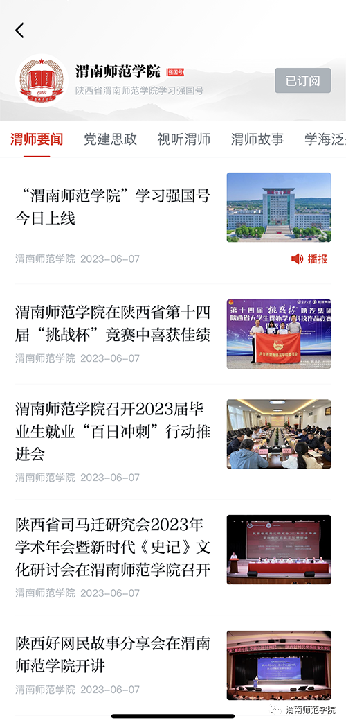 韩小卫指出,在全党深入开展学习贯彻习近平新时代中国特色社会主义思想主题教育之际,“渭南师范学院”强国号上线有着非常重要的意义,也标志着我校新闻宣传工作迈入新起点。要高度重视,举全校之力,切实建好、用好强国号;加强建设,进一步推动学校展示学习宣传贯彻习近平新时代中国特色社会主义思想的好经验、好做法,讲好立德树人、教书育人、以文化人的师生故事,展示学校在党建思政、人才培养、教学科研、文化传承、社会服务等方面的发展动态与成果,不断提高学校的知名度和美誉度。各单位要强化组织,积极参与学习平台建设,建好通讯员、信息员和评论员队伍,形成全校共同参与、齐抓共管的工作格局,深挖本单位教学、科研、管理、服务一线的育人典型和育人资源,积极分享推介,提升传播力度,让强国号成为基层党建的助手、理论学习的平台、文化建设的窗口、宣传阵地的排头兵。