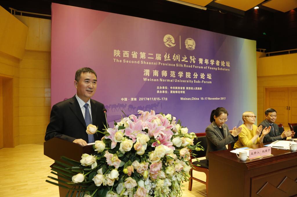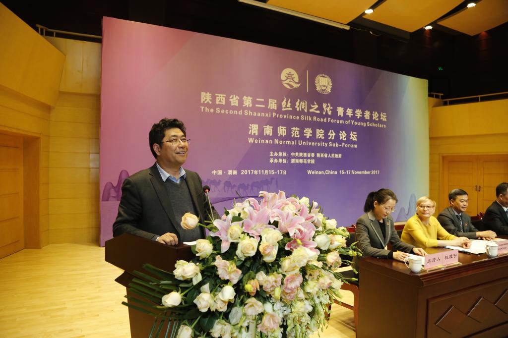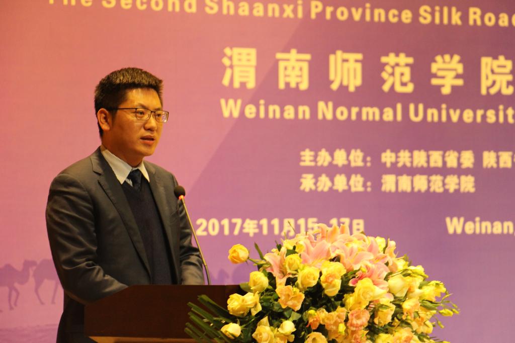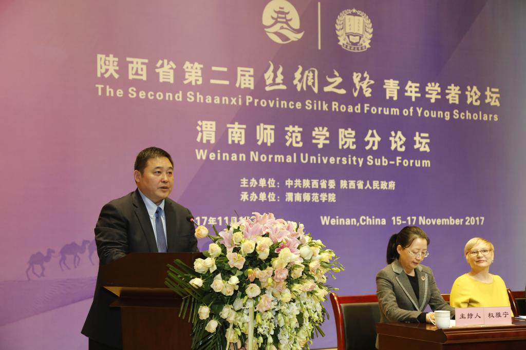 11月16日下午,陕西省第二届“丝绸之路青年学者论坛”分论坛在渭南师范学院逸夫楼华金音乐厅隆重开幕。来自俄罗斯、日本、泰国等50余名海内外青年学者,陕西省委组织部副巡视员魏永义,渭南市委常委、副市长吕培明,渭南师范学院校领导、渭南师范学院师生代表及新闻媒体记者等500余人参加了此次论坛,大会由渭南师范学院副院长权雅宁主持。