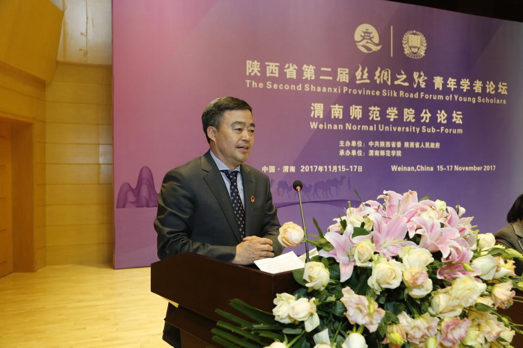 渭南市委常委、副市长吕培明代表中共渭南市委、渭南市人民政府向与会的学者专家与领导致以诚挚的欢迎。他讲到,渭南是位于八百里秦川最宽阔的地带,是中原地区通往陕西乃至大西北的咽喉要道,又是新欧亚大陆桥的重要地段,是丝绸之路经济带起点段的关键组成部分。就我市目前的行业发展情况与经济发展状况,吕副市长指出当前的渭南正处在追赶超越、转型升级的关键期,对优秀人才的渴望比以往任何时候都更加迫切。本次的论坛为广大海内外学者提供了一次交流的机会,希望青年才俊们多多了解渭南,了解渭南师范学院,携手共创渭南的美好明天。