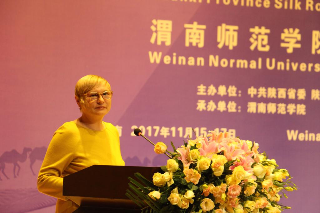 俄罗斯莫斯科国立师范大学巴尔让诺娃·玛格丽特·瓦列里耶夫娜教授代表该校首先对陕西省人民政府在两校联合办学工作上提供的支持与帮助表示感谢。她表示,莫斯科国立师范大学与渭南师范学院在人才交流工作上的合作,一方面促进了两国学者在教学科研方面的相互交流与提升,另一方面帮助了广大青年学者从更为国际化和多元化的视角进行学习与研究。她希望能够在今后的交流工作中加强沟通与联系,不断增强师资队伍建设,保证中俄联合办学的高质量水平。